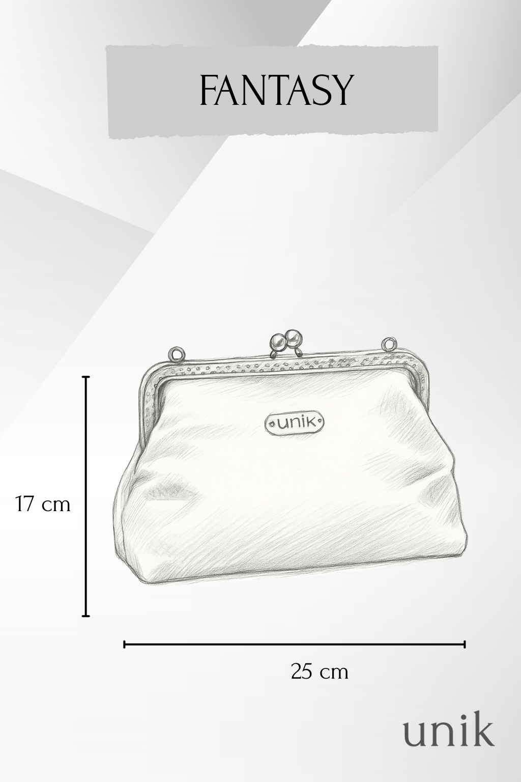 El Fantasy és un bolso de festa creat amb delicadesa i passió pels detalls. Confeccionat amb roba d’alta qualitat, combina textures suaus i un disseny artesanal que desprèn autenticitat i elegància natural.