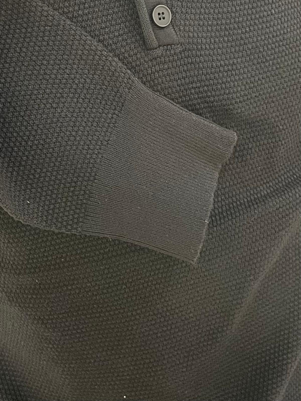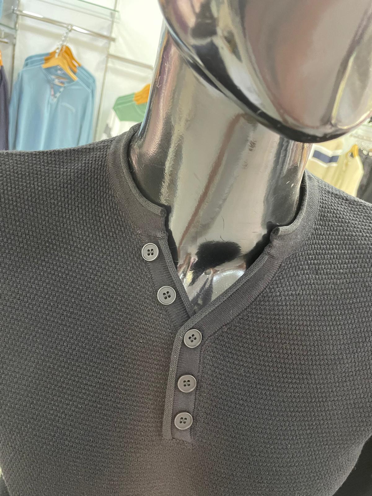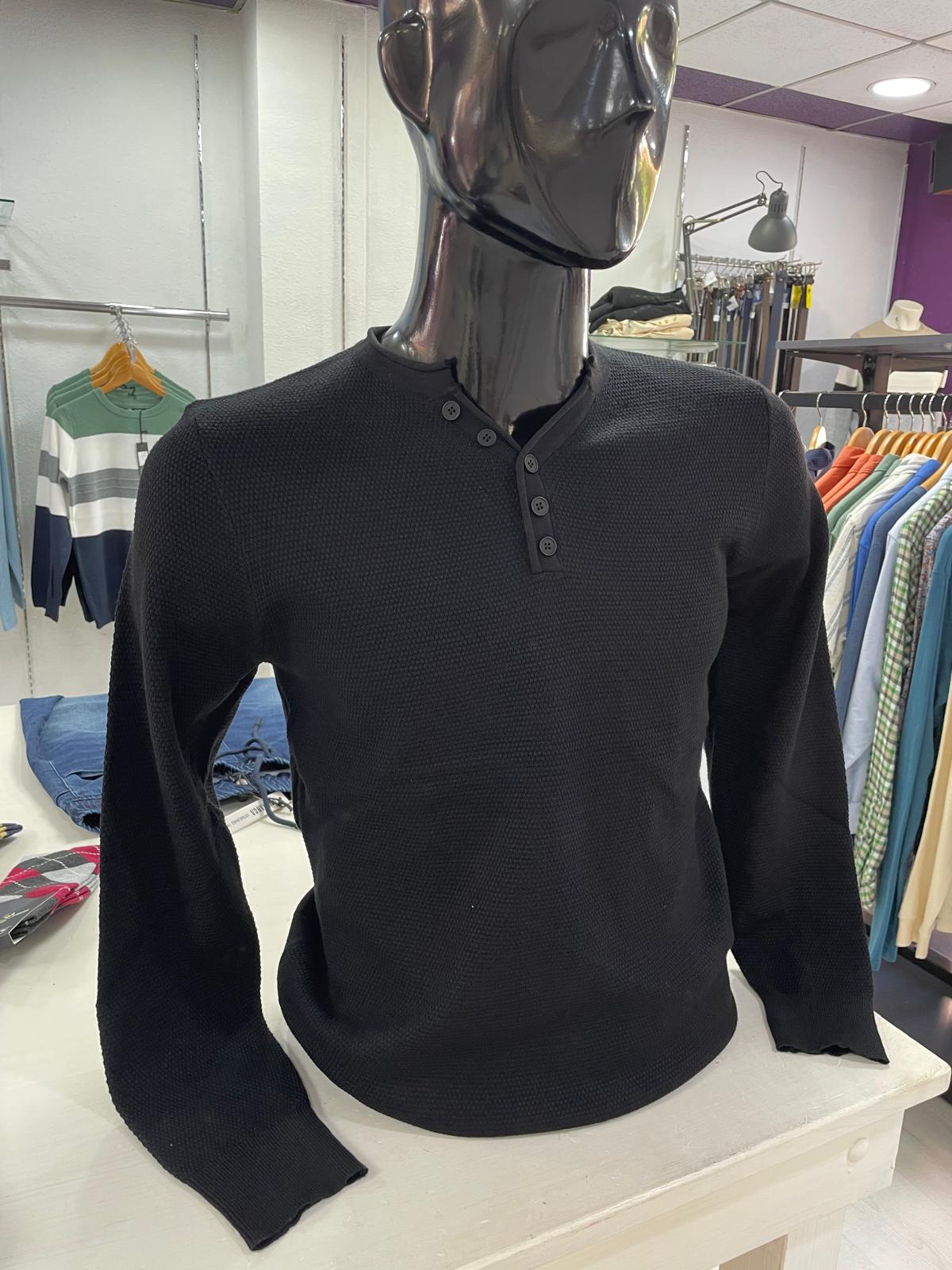 Su tejido de punto fino y cuello redondo con escote abotonado aportan comodidad y estilo, mientras que las terminaciones en rib en mangas y bajo aseguran un ajuste perfecto.