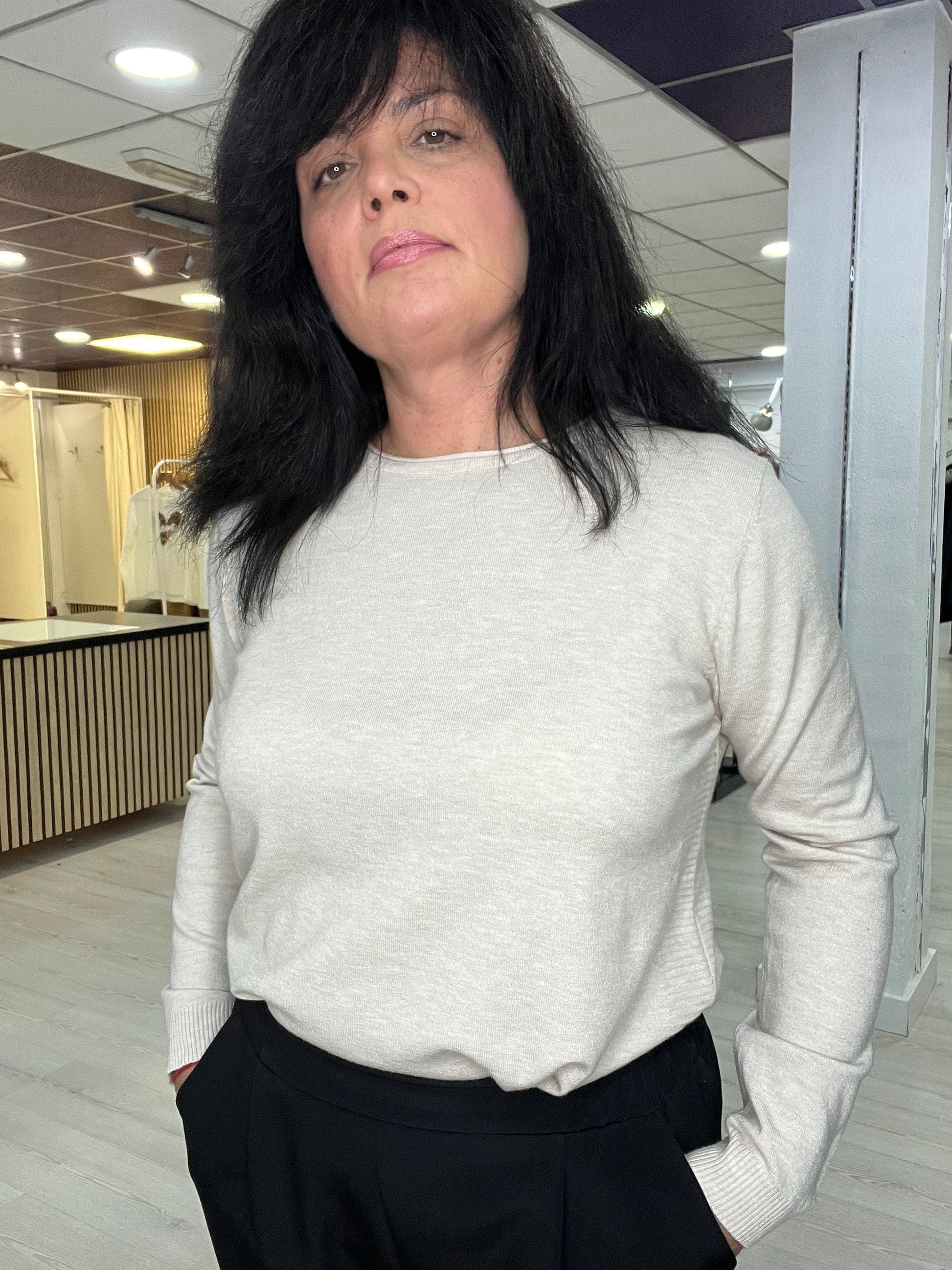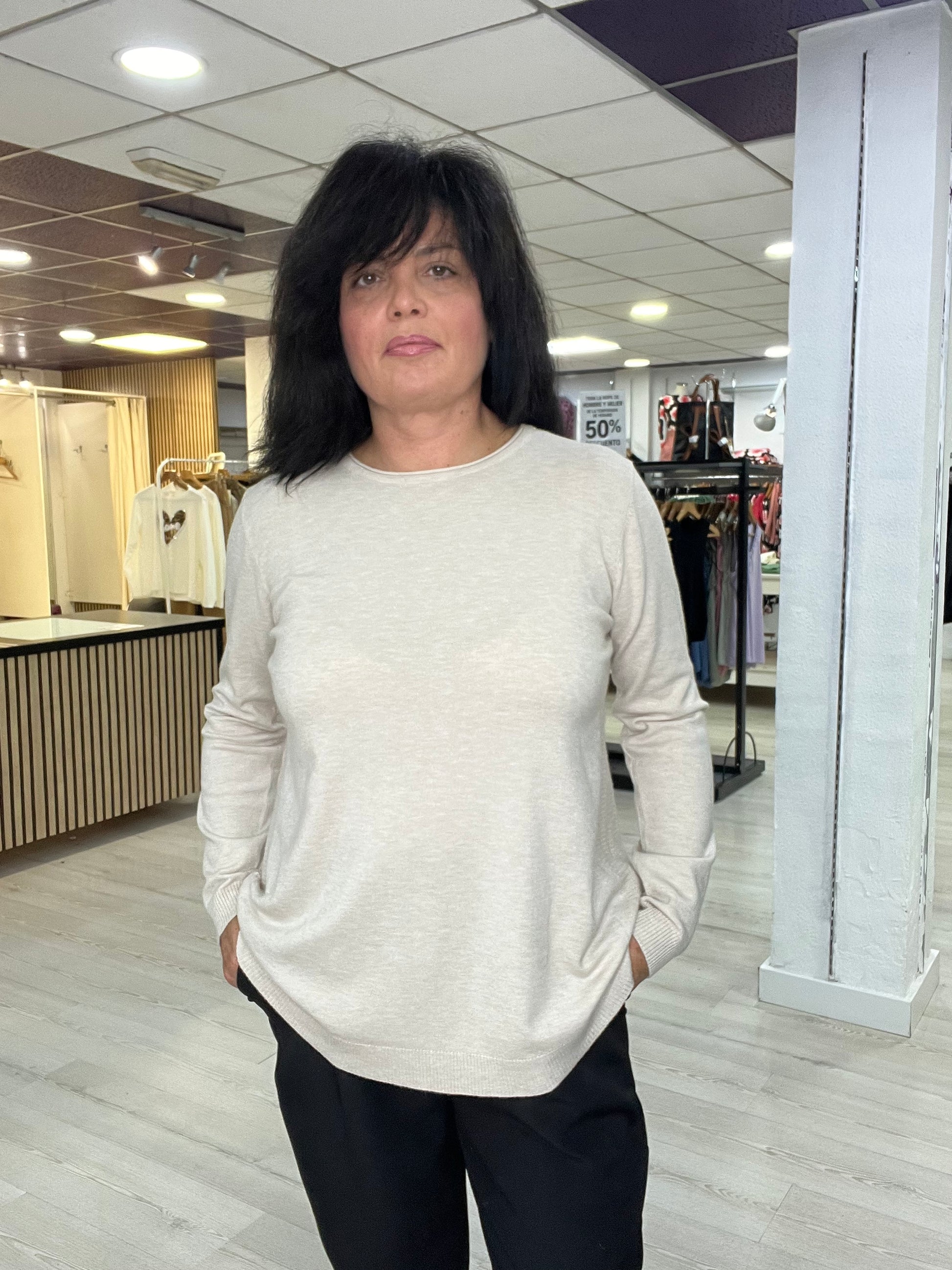 T-L/XL.👉Jersey suave con aberturas laterales beig Siloa