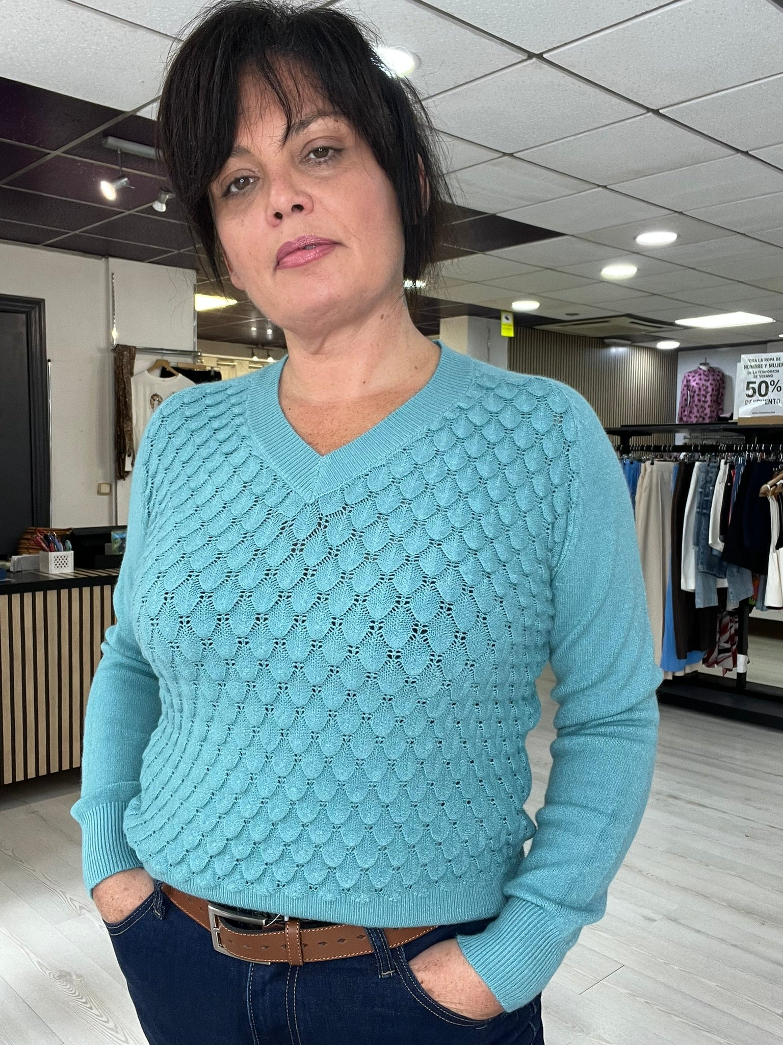 🧶 Jersey de punto suave turquesa Rosalía