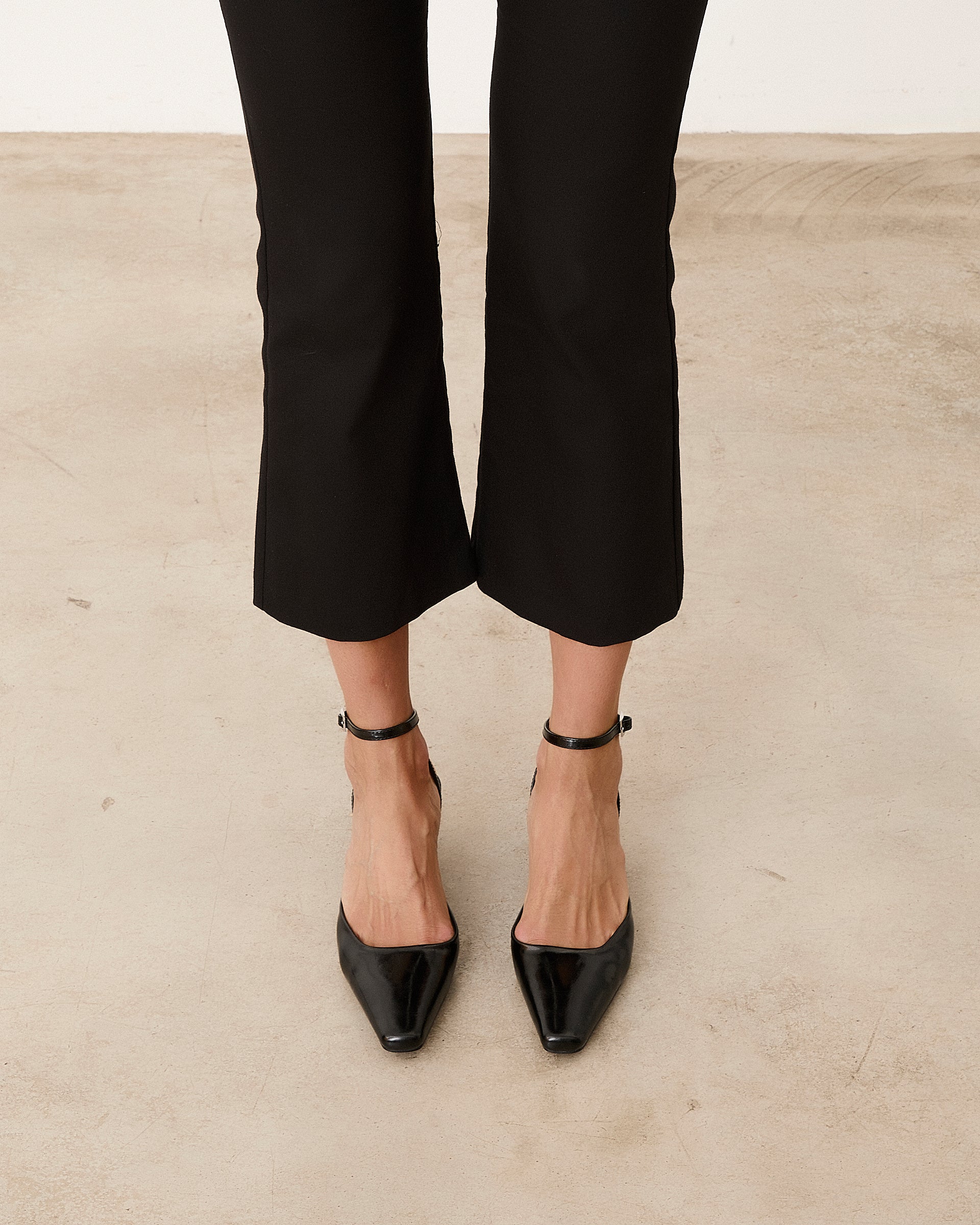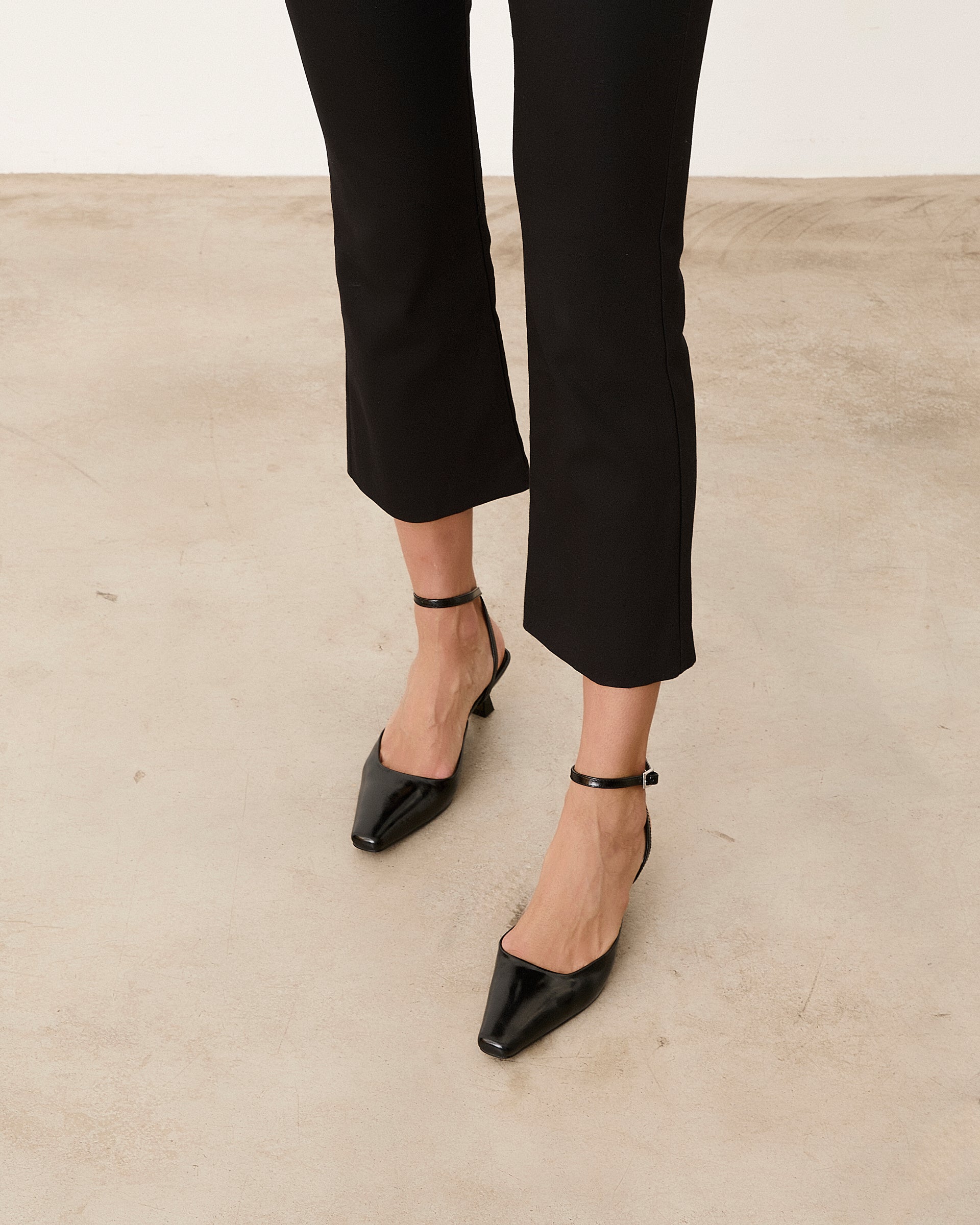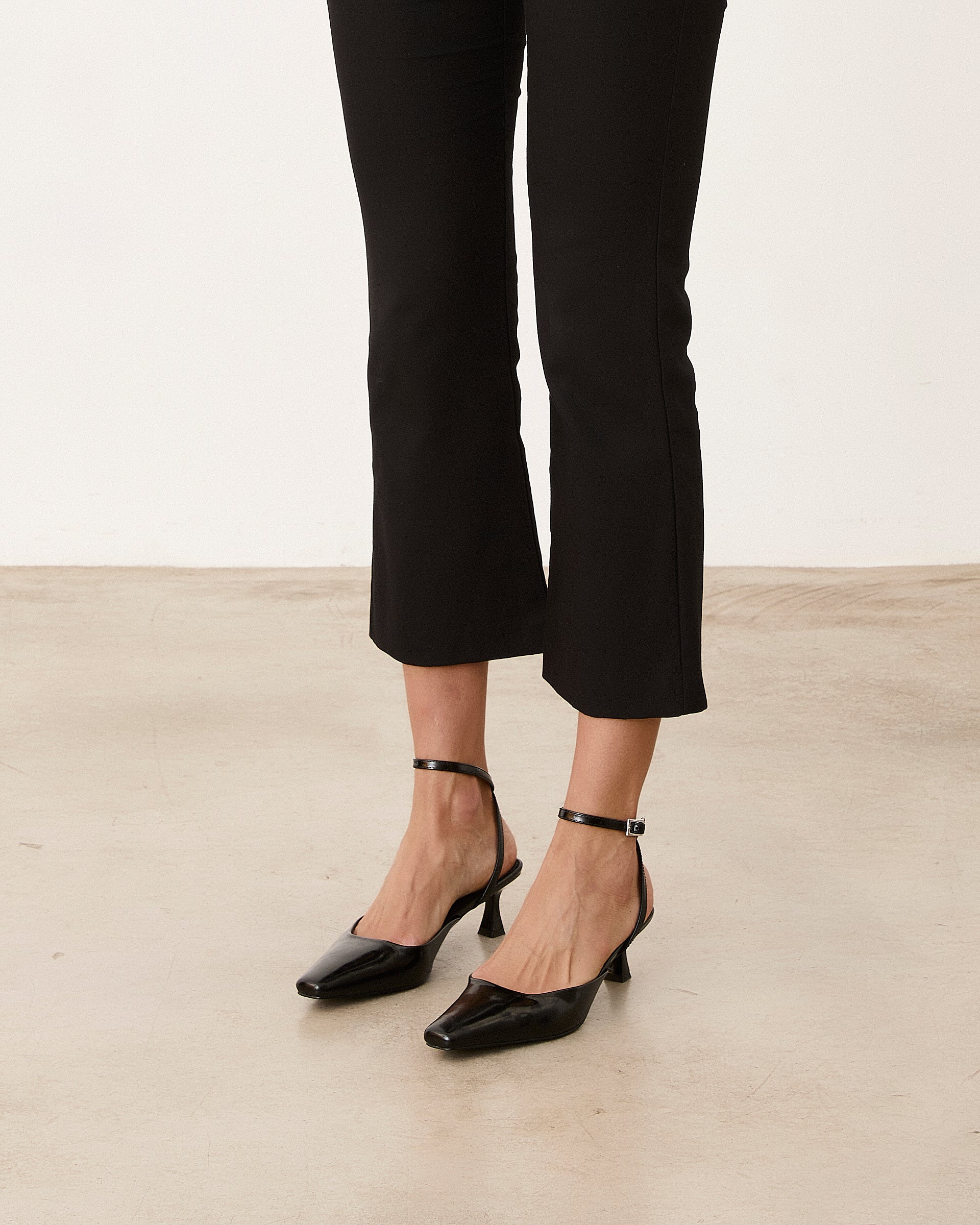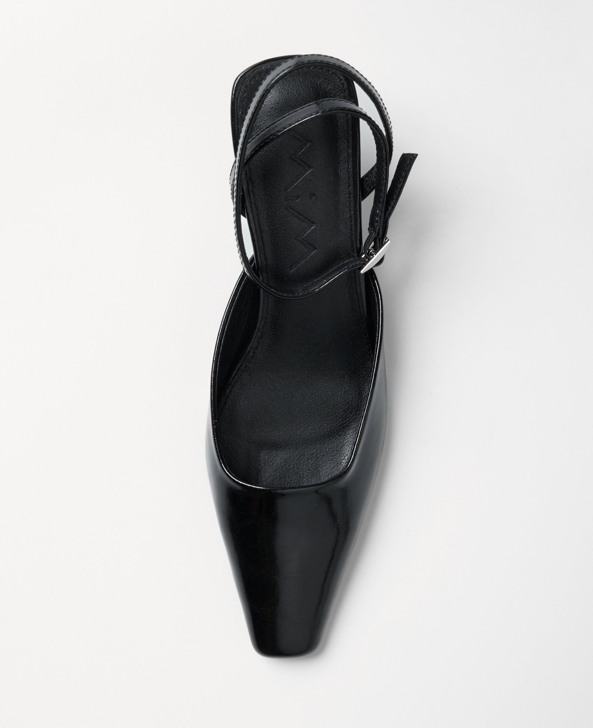 Tacón cerrado de tacón tipo aguja con acabado en punta en color negro. Pulsera para cierre en tobillo.