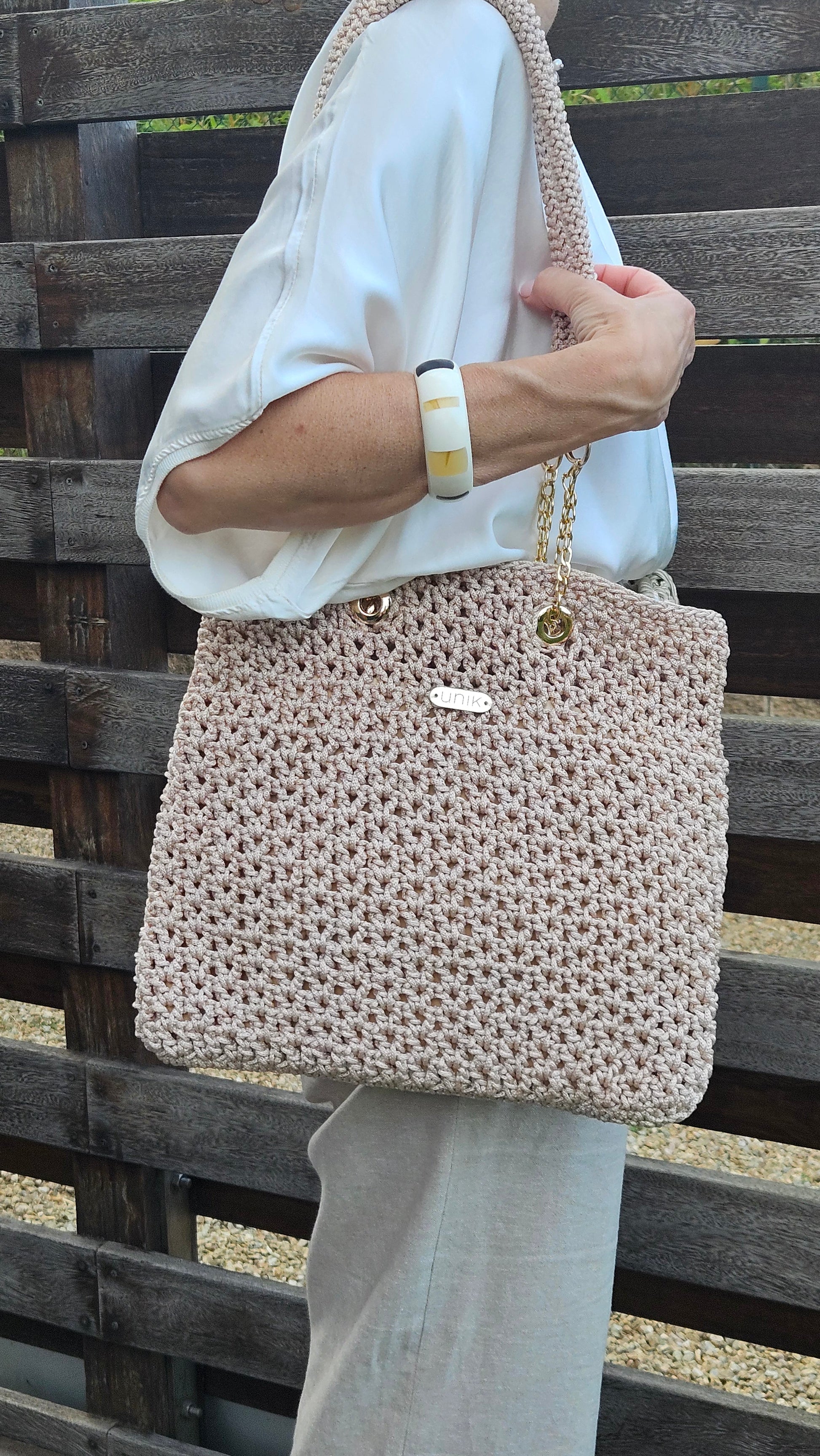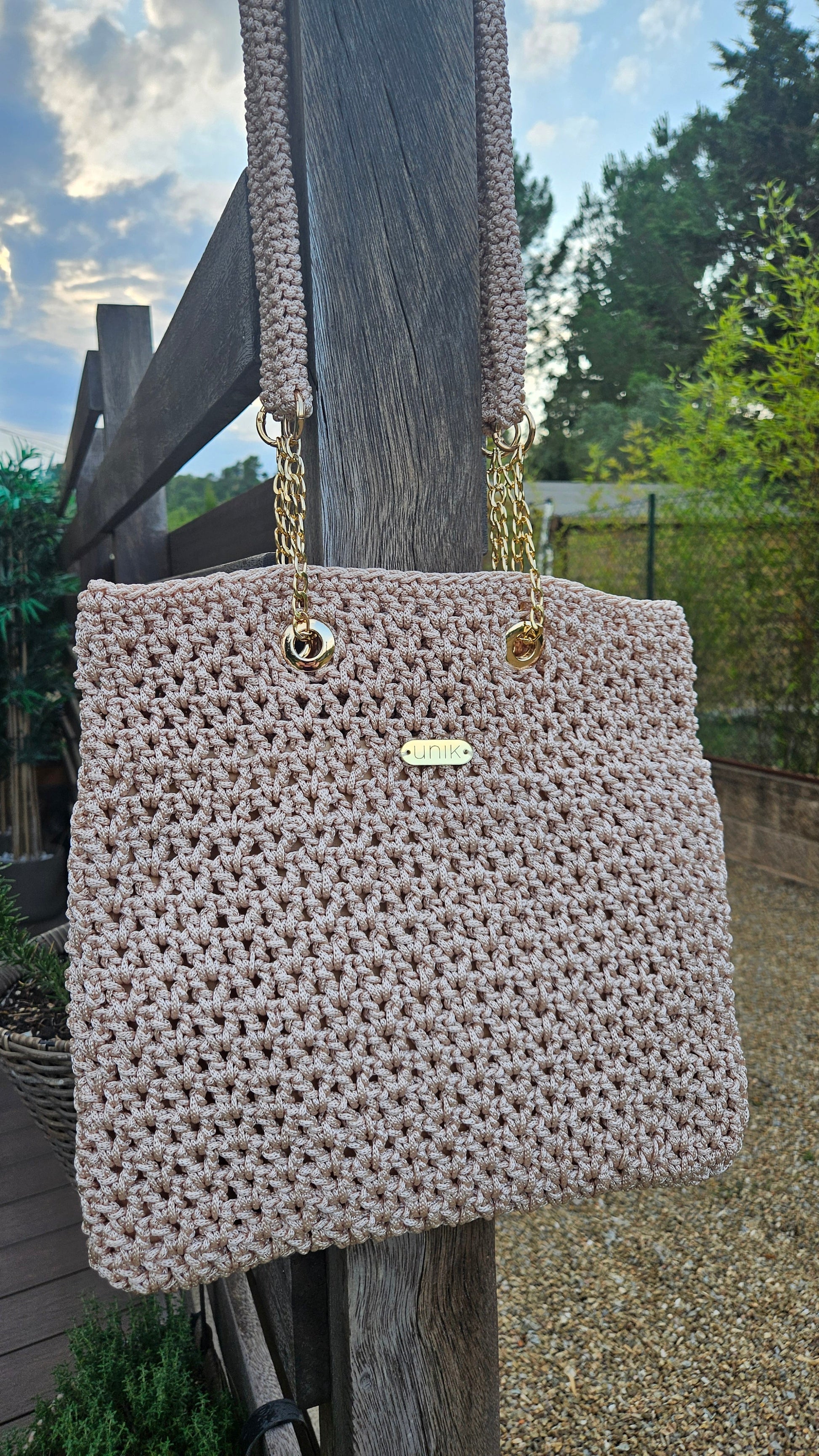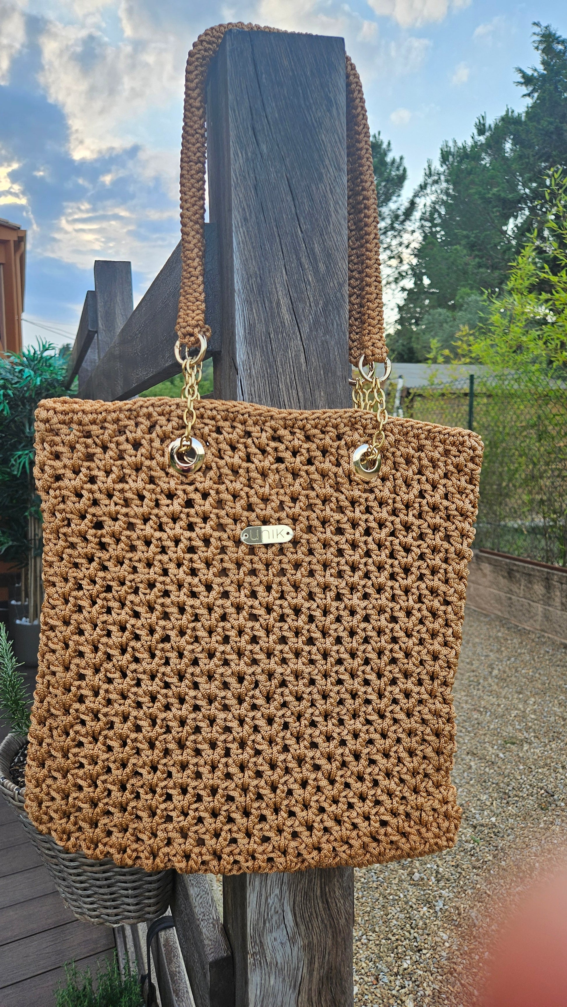 Mady, la nostra bossa de ganxet dissenyada per a dones que valoren l’artesania, l’estil i la funcionalitat a parts iguals. Fet a mà amb cura fil a fil, el model Mady destaca per la seva textura càlida i sofisticada que aporta un toc bohemi i elegant a qualsevol look.