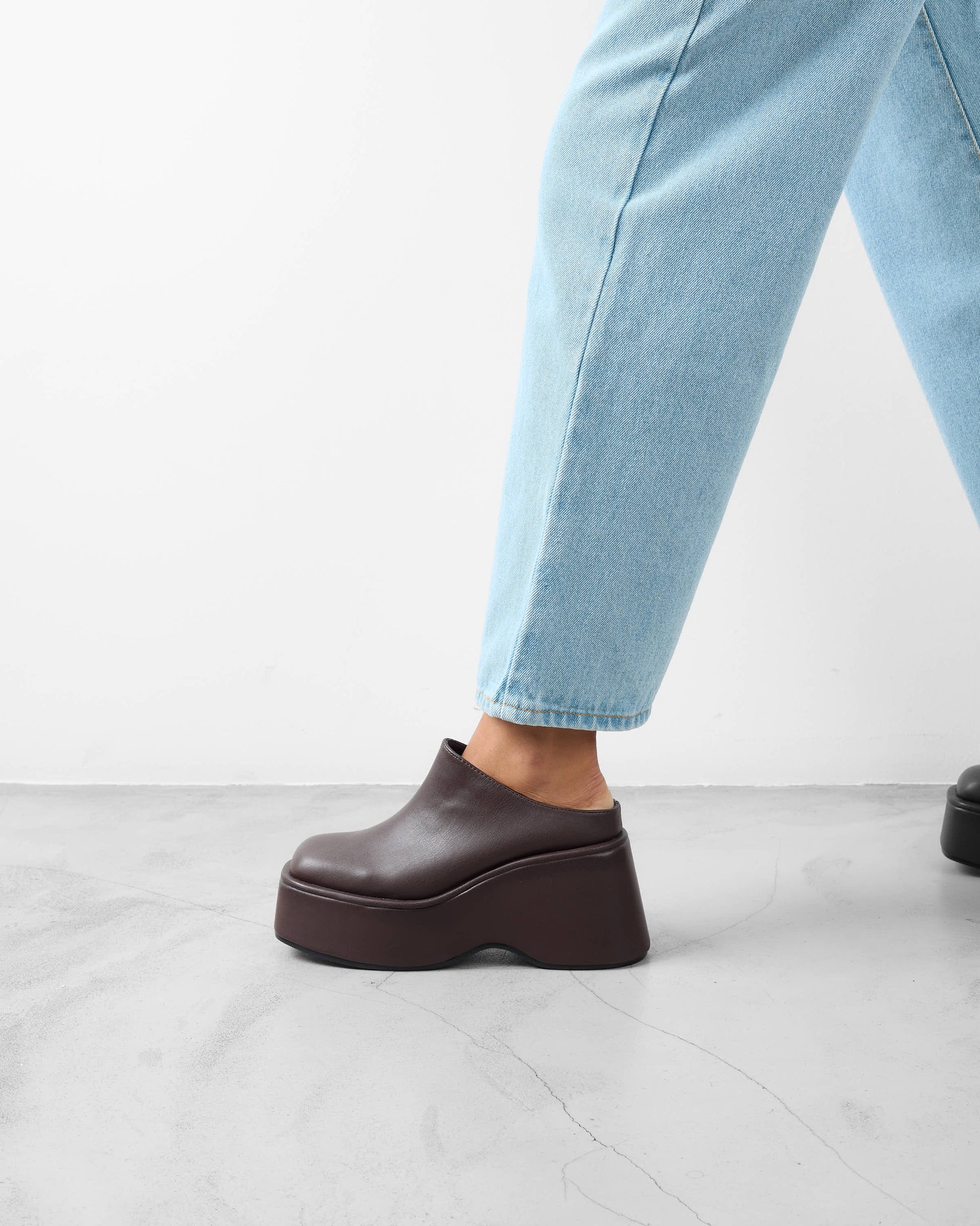 Zueco de plataforma en color chocolate.