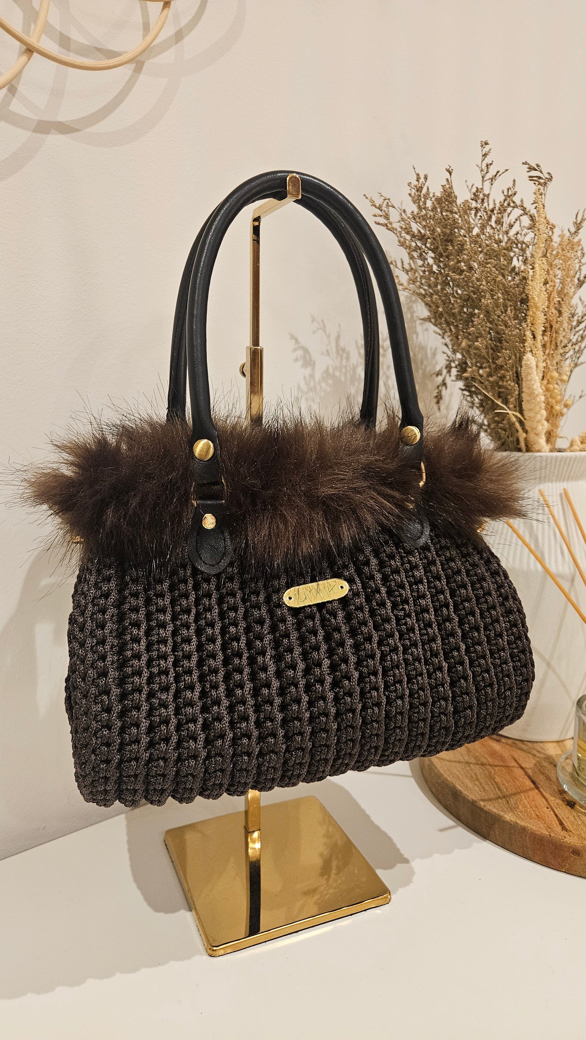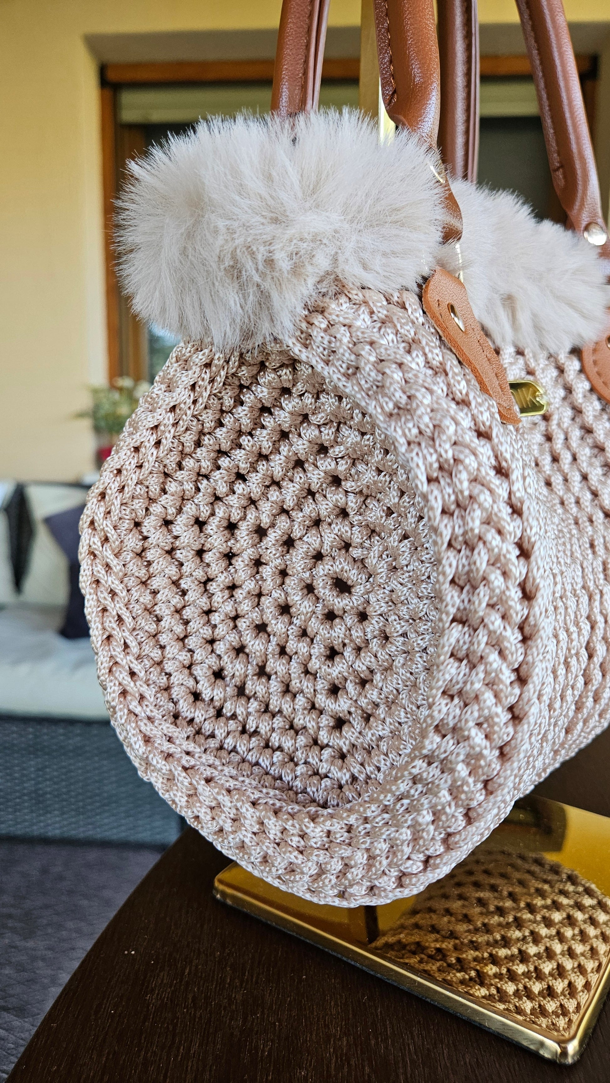 El NÒRDIC és un bolso que uneix l’artesania handmade amb un disseny modern i atemporal. Està elaborat amb ganxet de textura robusta en un to neutre fàcil de combinar, i decorat amb una delicada vora de pèl suau que aporta calidesa i sofisticació.