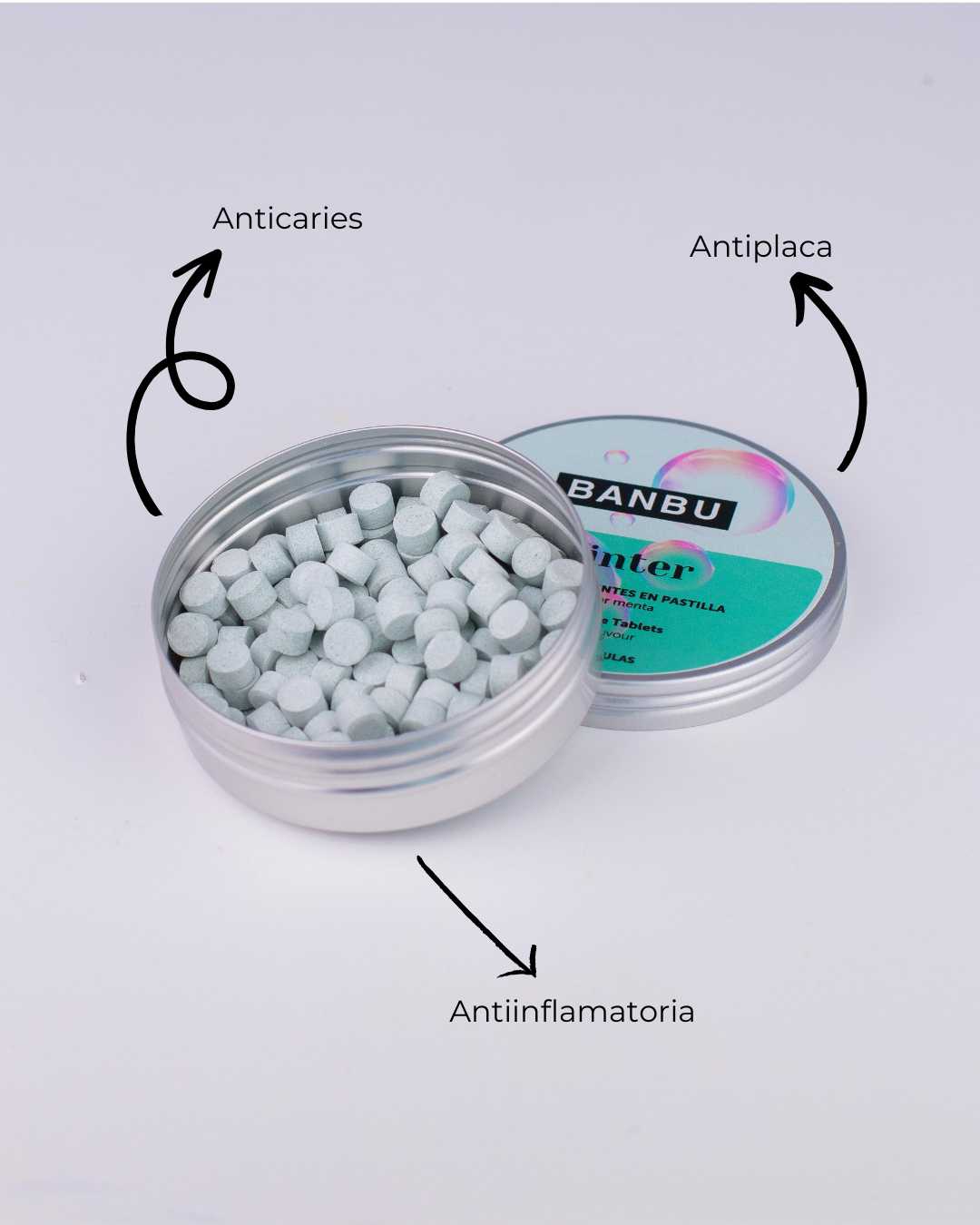 120 pastillas | Envase reutilizable | Fórmula vegana | Cruelty free | AntiCaries | antiinflamatoria | Sabor menta