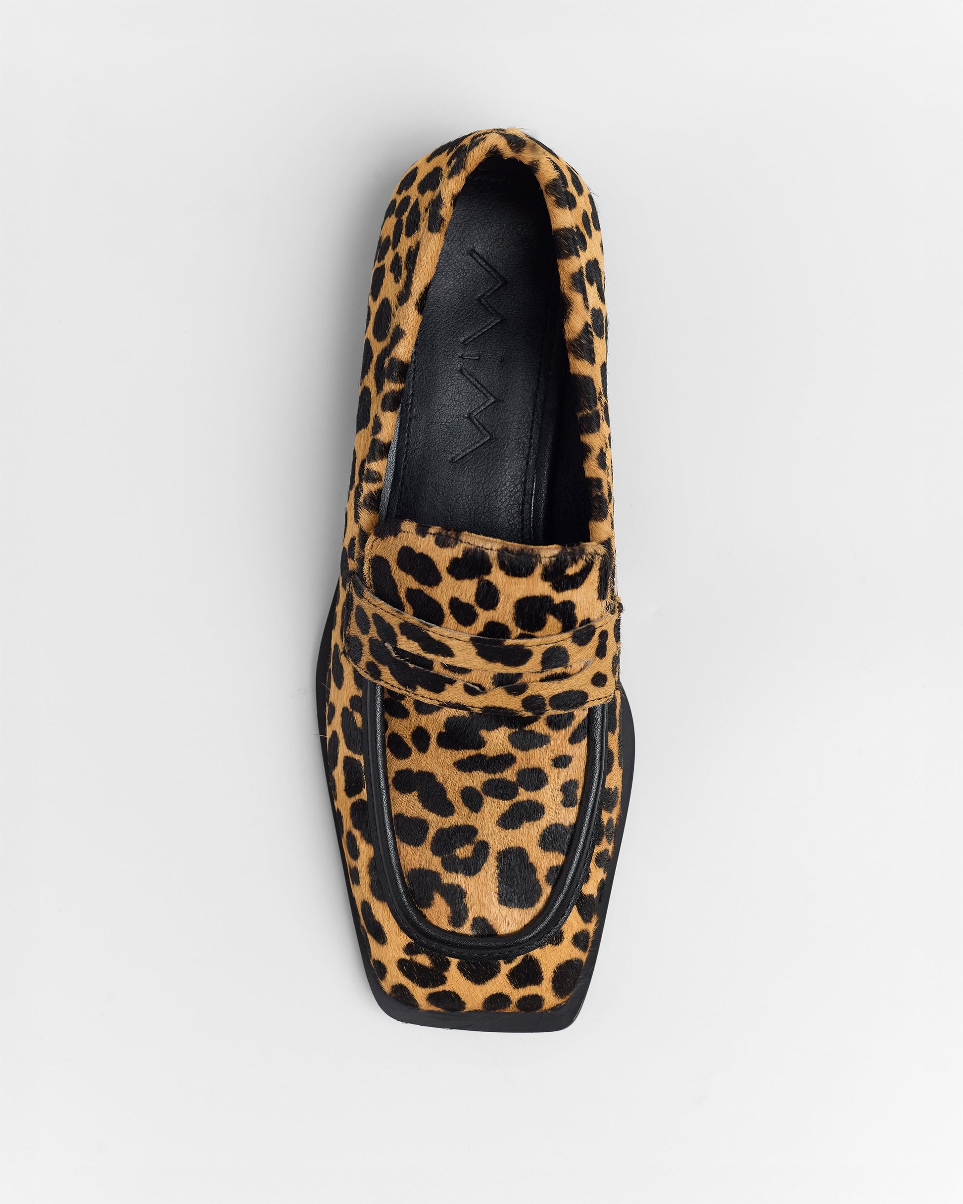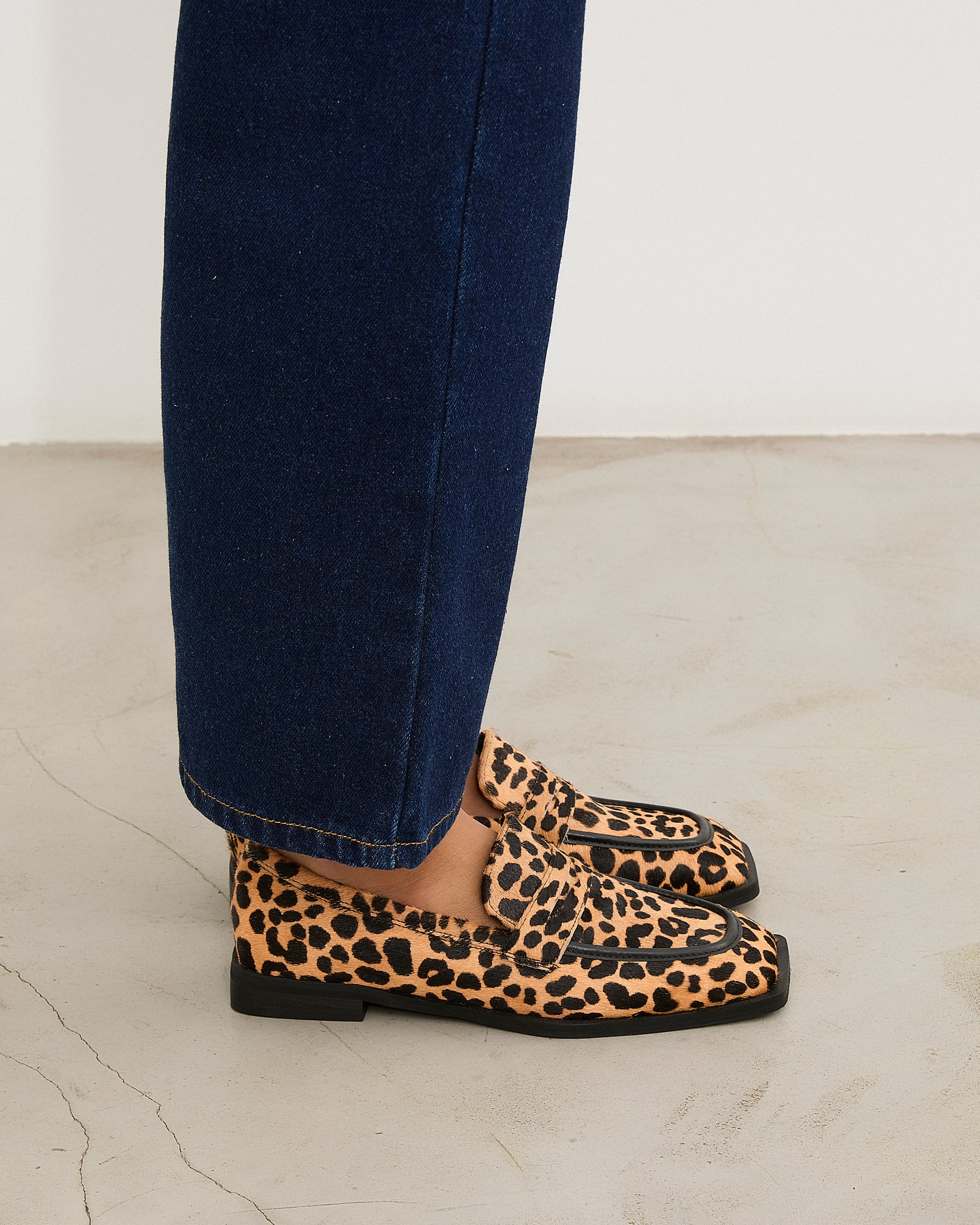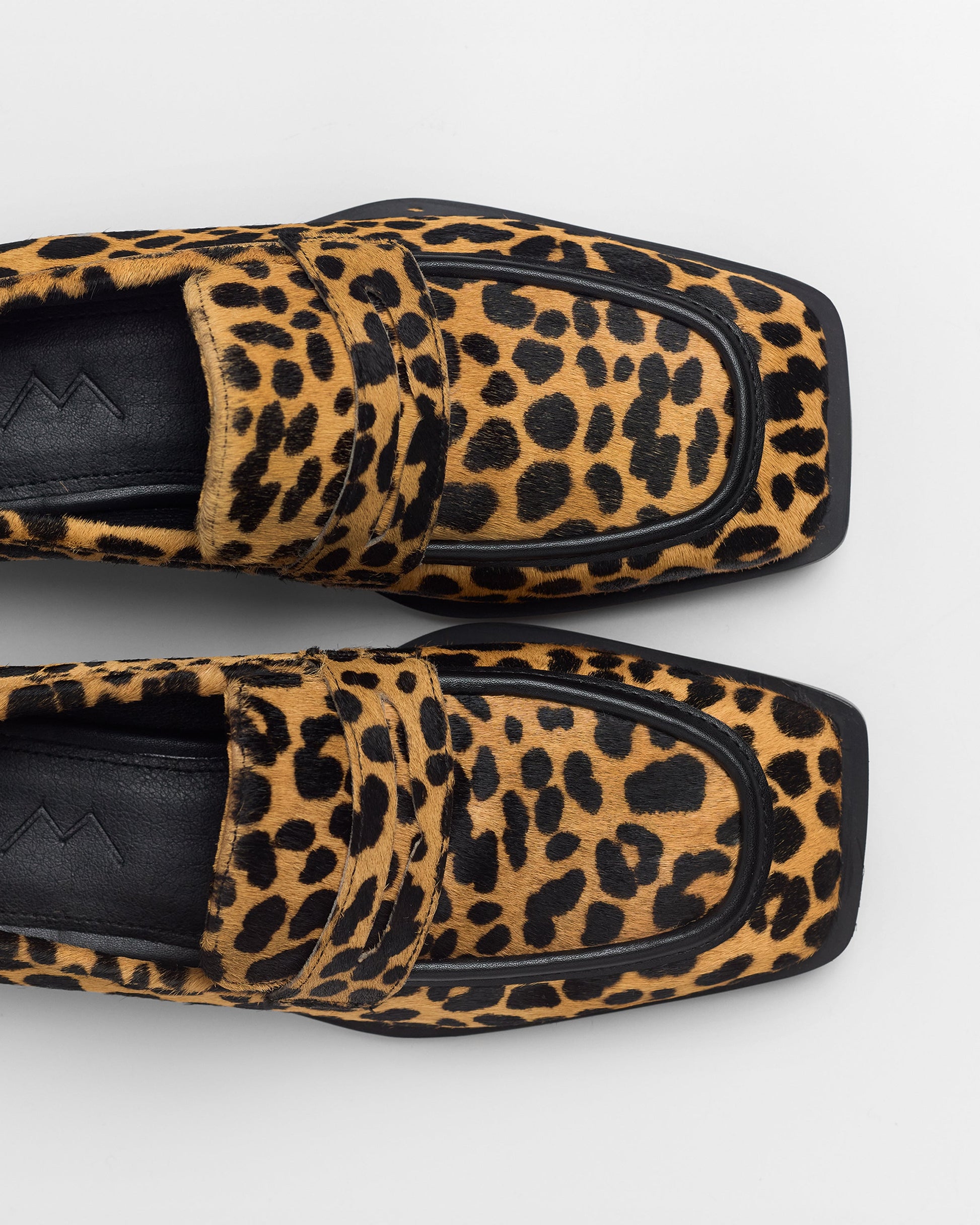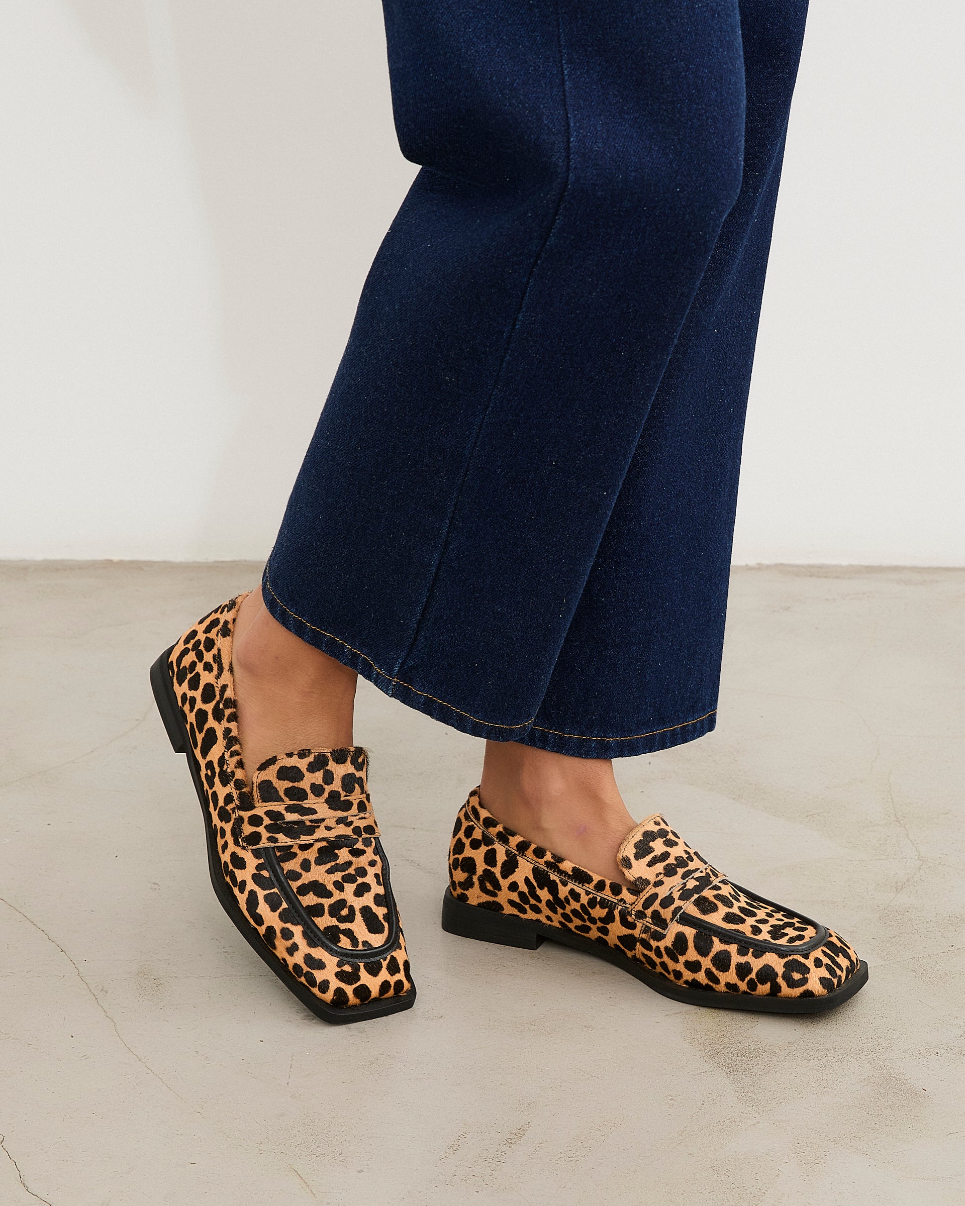 Zapato cerrado estilo mocasín de piel con pelo estampado animal print