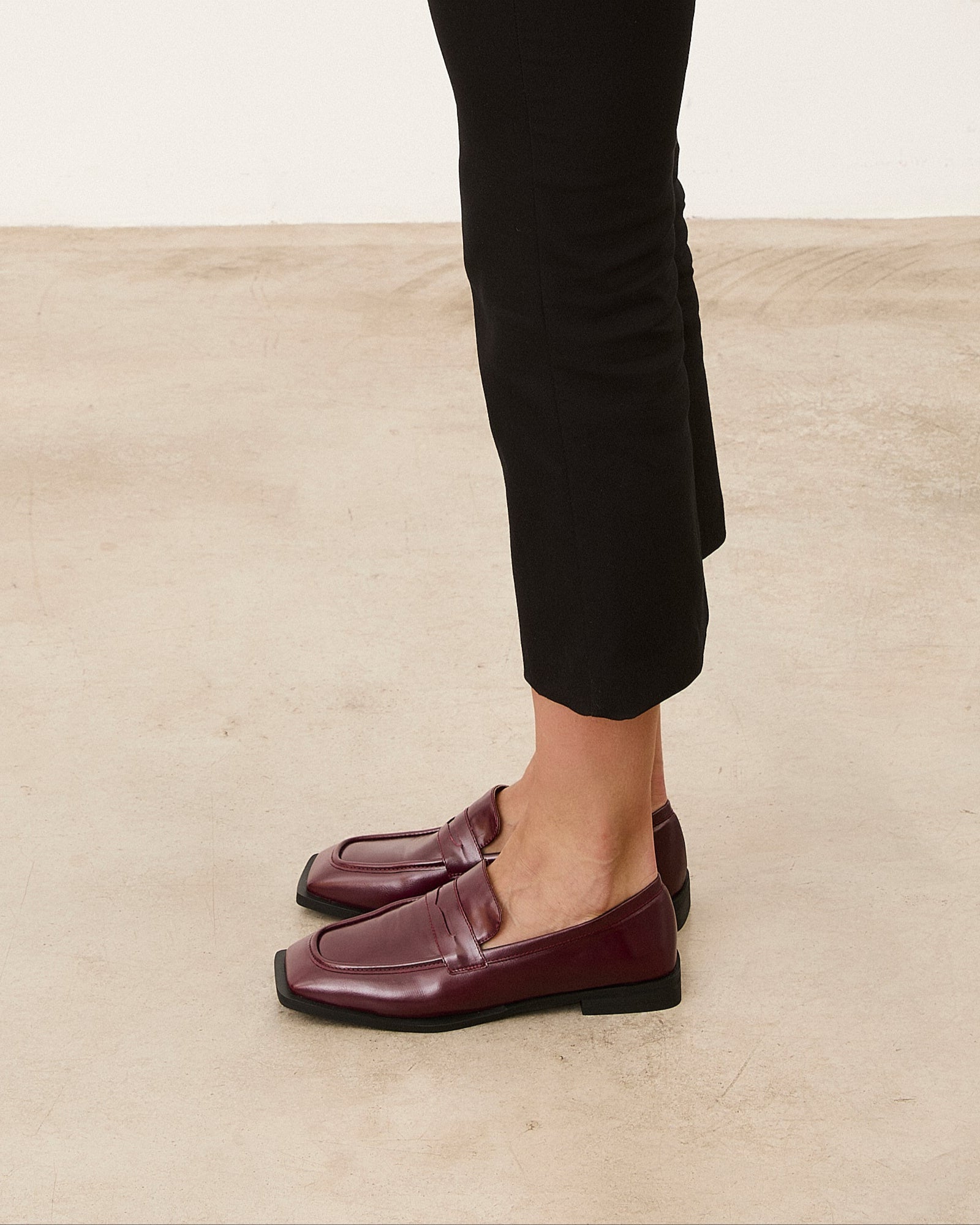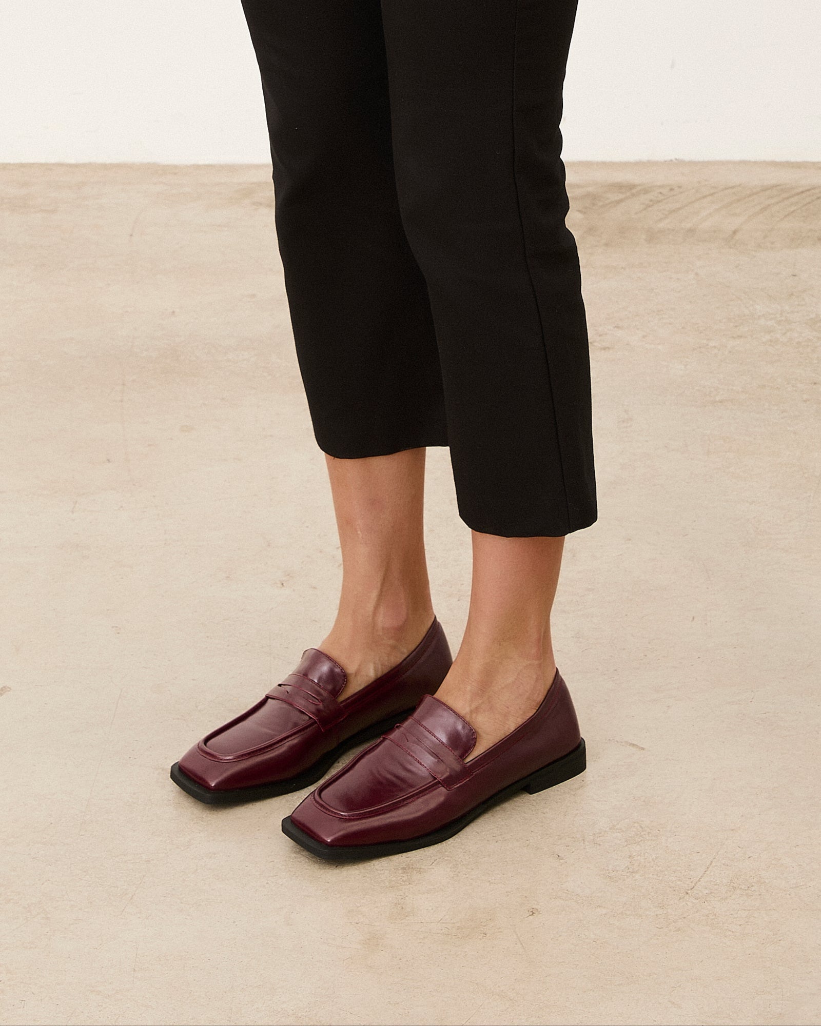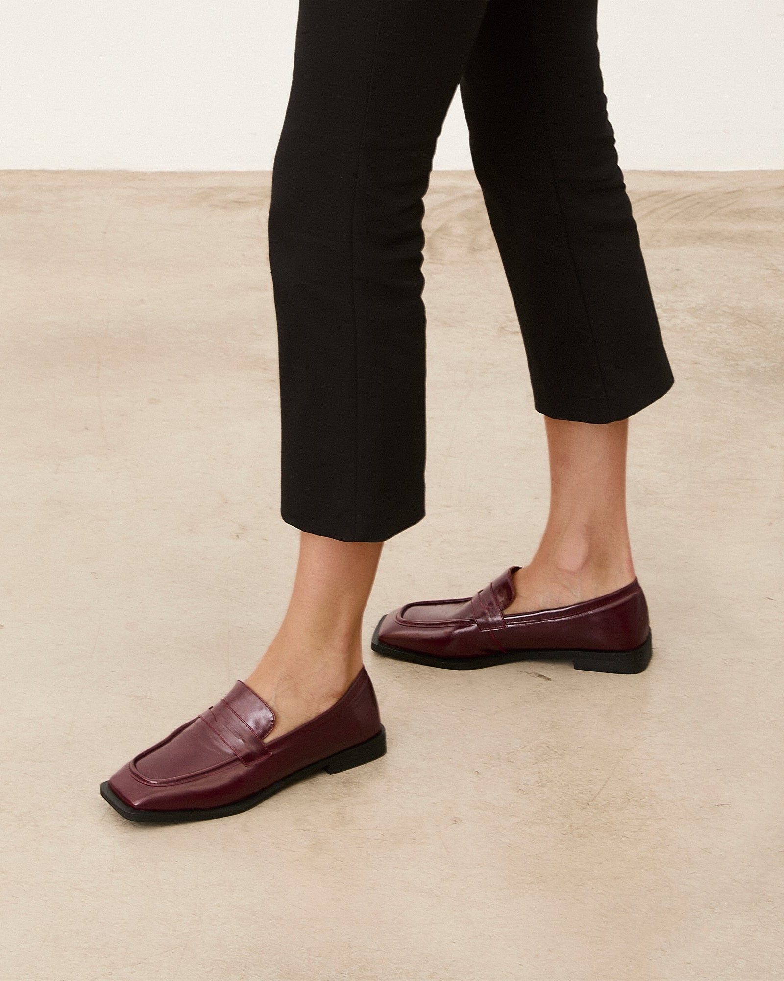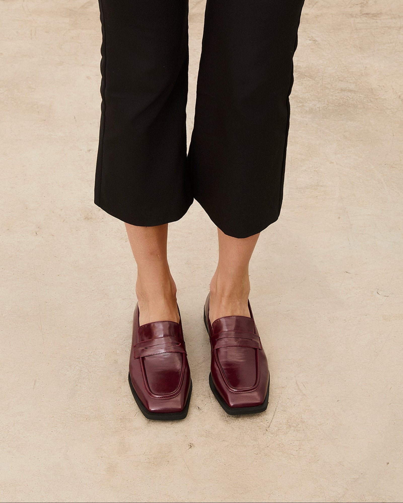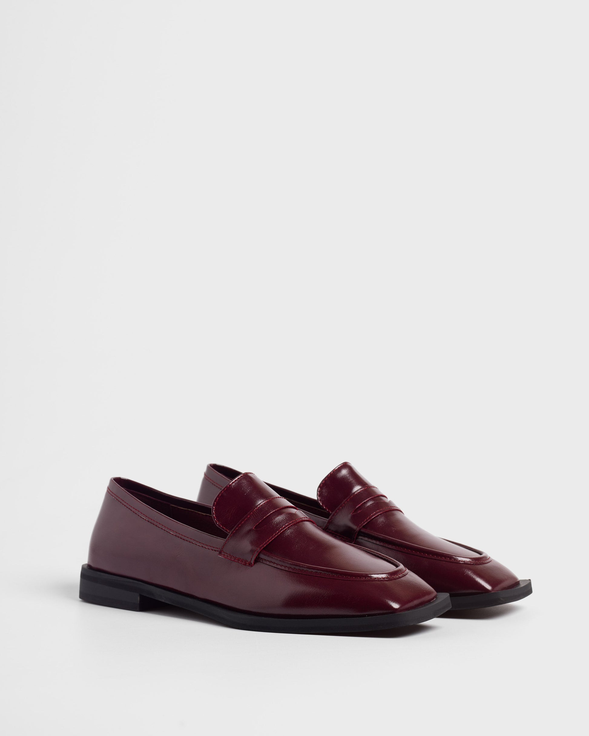 Zapato cerrado estilo mocasín efecto charol en color rojo.